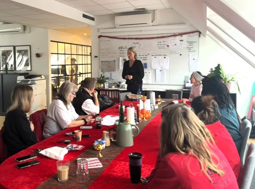 Der er koncentration i rummet, gode spørgsmål i luften og masser af faglig nysgerrighed, når vores områdeterapeut Line Brunvold i disse decemberdage underviser kollegaer fra Rudersdal og Helsingør i rehabilitering.
