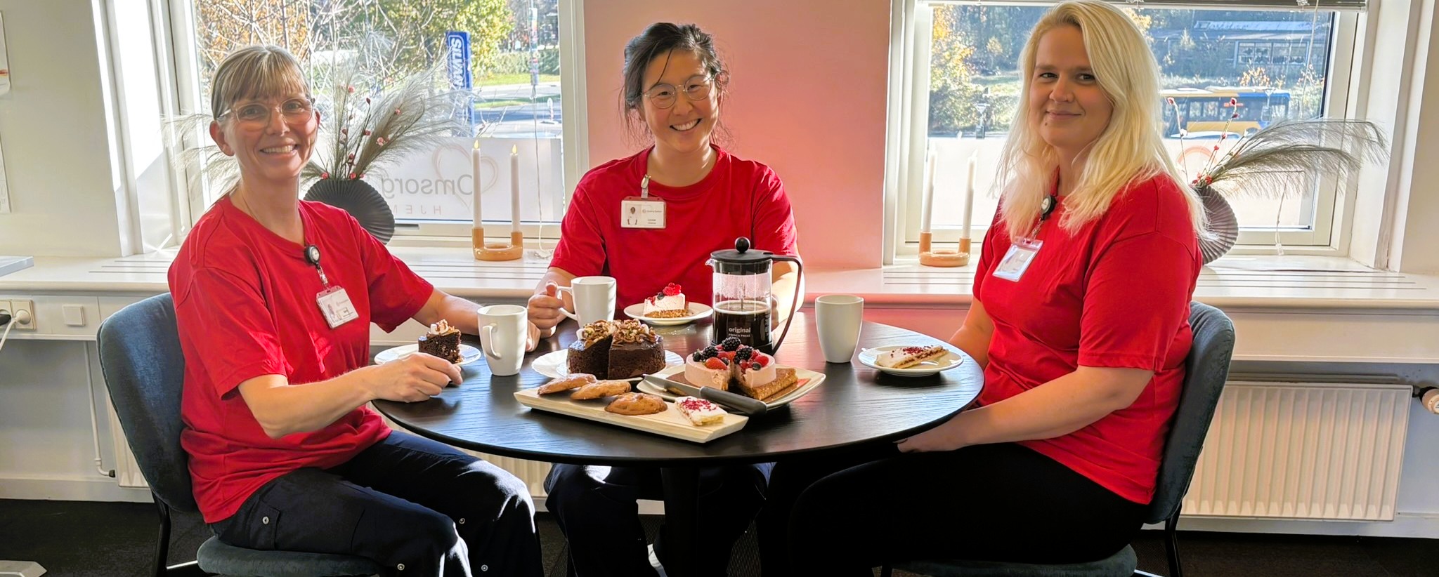 Omsorg Sjællands faste medarbejdere mødes med borgere og pårørende til uforpligtende kaffemøder med kage inden opstart. Fra venstre: Bente Pia Mortensen, Louise Kaas Frimann og Stine Sandvad.